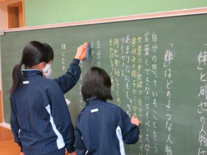 6年生 国語科 読み取ったことを黒板に書き出しています。