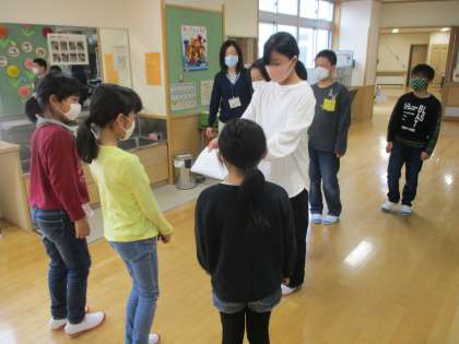 4年生 5年生から、昨年度育てたヘチマの種を受け取りました。今年も大きく育つといいですね。