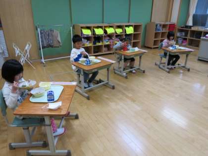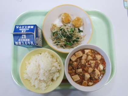 今日の献立は、にんじんシューマイ、しおナムル、マーボーどうふ、です。