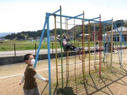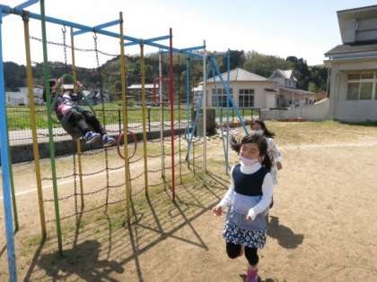 気持ちよく晴れたので、下学年はグラウンドに出てきました。