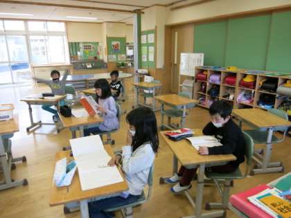 4年生は、3人で声をかけあって新しい漢字の学習をしていました。