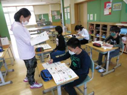 5年生は、家庭科の初めての実習、お茶の入れ方の学習をしています。