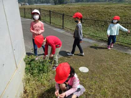 学校のまわりで、春を見つけました。タンポポの綿毛にオタマジャクシ・・・。たくさんあったツクシが別のものに変わっていて、びっくりしていました。