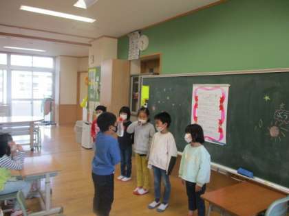 1・2年生 学校へようこそ集会 公開日 2021/04/23 更新日 2021/04/23 1年生 2年生は、生活科の学習で「学校へようこそ集会」を開き、1年生を招待しました。 2年生は、「1年生に笑顔になってもらう」「1年生と仲良くなる」という目当てをもって、活動を考え、準備してきました。 インタビューや読み聞かせ、ゲーム、クイズ、こおりおに等の活動を行いました。
