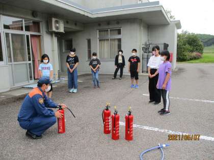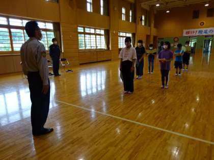 八尾消防署の署員の方からバッジをいただき、その後、誓いの言葉を述べて、火災予防に努めることを約束しました。