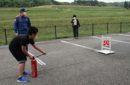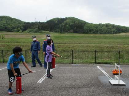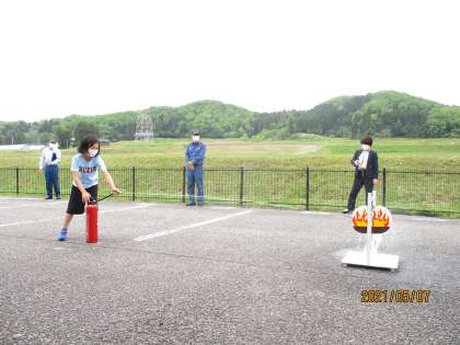 BFC入団式2 公開日 2021/05/07 更新日 2021/05/07 学校風景 入団式の後、校舎裏の駐車場で、消火体験を行いました。 これまでも、実施したことがあるので、みんな落ち着いて消火器を扱うことができました。