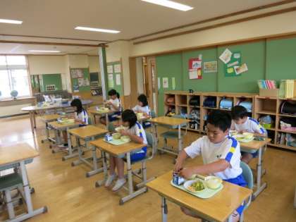 田植えが終わって、給食のご飯を食べる量が少し増えました。