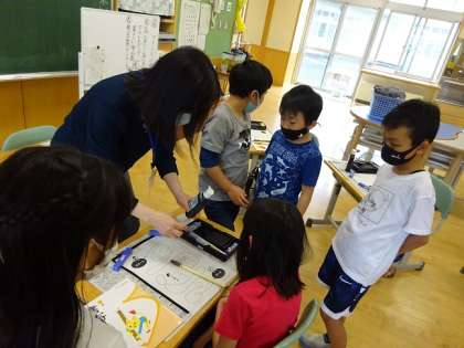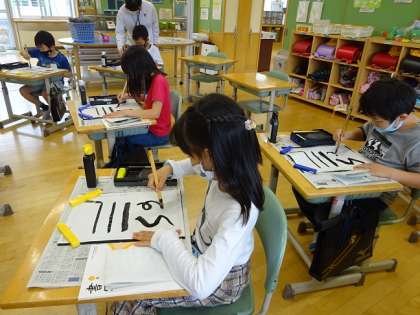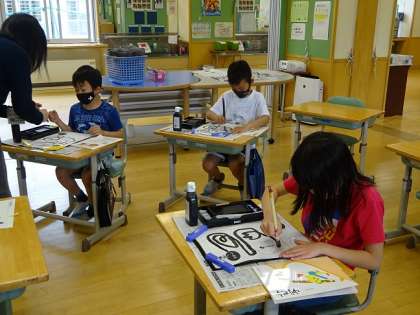 準備の仕方や筆の持ち方を習った後、いろいろな線を書いてみました。