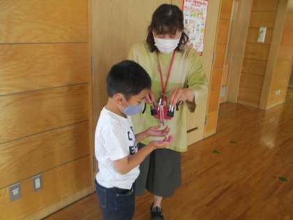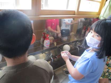 2年生 手洗い学習 公開日 2021/05/14 更新日 2021/05/14 2年生 2年生は、手洗いの大切さや正しい手洗いの仕方について学習しました。洗い残しが分かるクリームを塗ってみると、しっかり手洗いをしているつもりでも、指の間や手首に汚れが残っていることが分かりました。学習の後、給食前には、自分が洗い残ししやすい部分に気を付けて、いつもよりも念入りに手洗いをしていました。