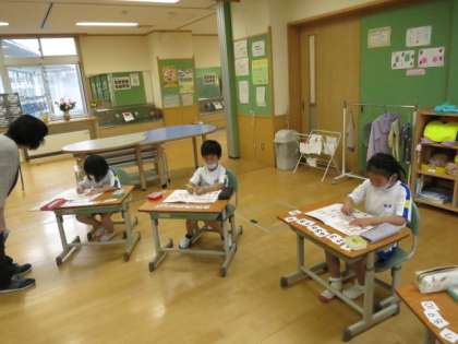 えんぴつの持ち方や文字を書く姿勢に気を付けています。