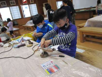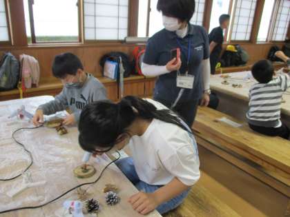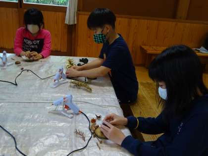 午後からは、植物の実や枝、葉を材料にしたクラフト作りをしました。