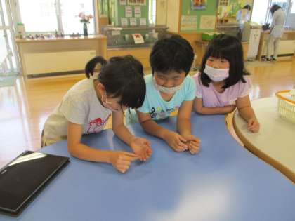 3年 モンシロチョウとアゲハチョウ 公開日 2021/05/28 更新日 2021/05/28 3年生 みんなで相談して、モンシロチョウは外の世界にかえすことにしました。大切に育てたモンシロチョウが幸せに暮らしていけるように、花が咲いている場所を探しました。これからも樫尾の自然の中で元気に過ごしてくれるといいですね。 今朝幼虫だったアゲハチョウは、算数の授業中にサナギになりました。休み時間には、他の学年の友達と一緒に、脱皮した皮を観察しました。