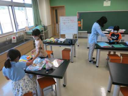ビー玉の転がり方を確かめながら、作品づくりをがんばっています。