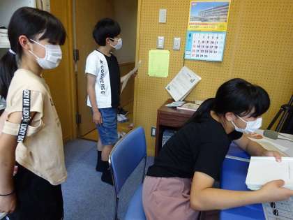 給食の時間にスポーツ・保健委員会は、清掃をがんばっている人を全校に紹介しています。