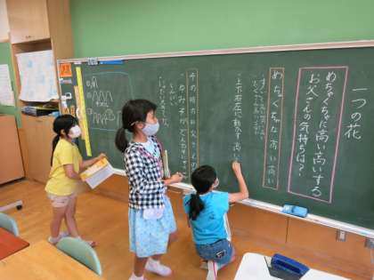 学習の様子5 公開日 2021/06/11 更新日 2021/06/11 学校風景 4年生 国語科 自分の考えをそれぞれ黒板に書いて、見合っています。 図画工作科の「コロころがーれ」の作品は、もうすぐ完成です。