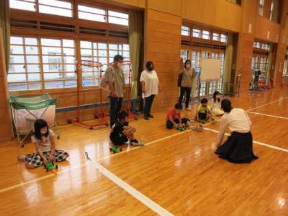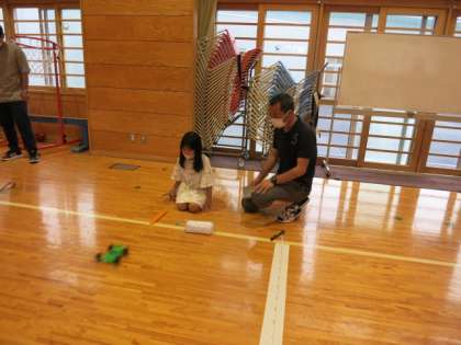 3年生 理科 ゴムの力で動く車の学習を行いました。