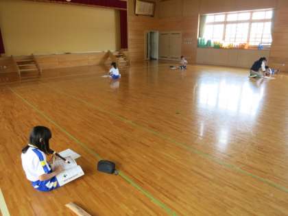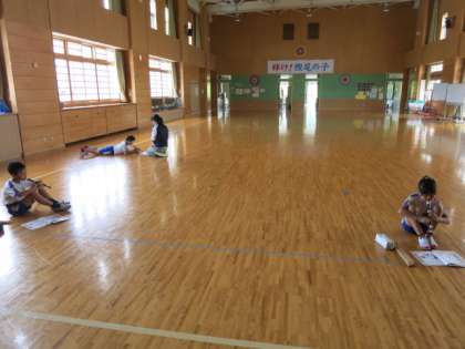 広い樫の子ホールで、伸び伸びとリコーダー演奏の練習をしています。