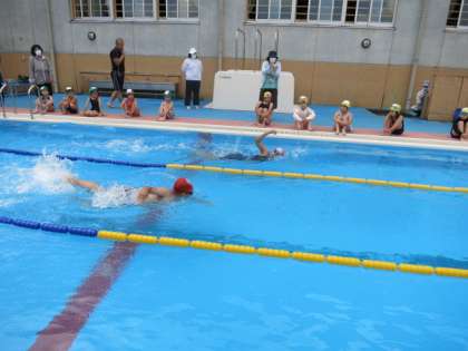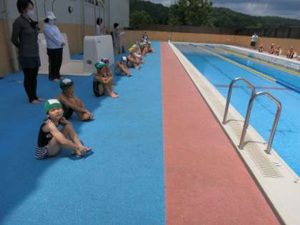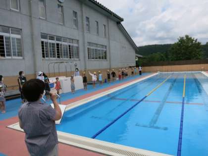 入ることができるか心配されましたが、無事晴れ、全校で入水しました。