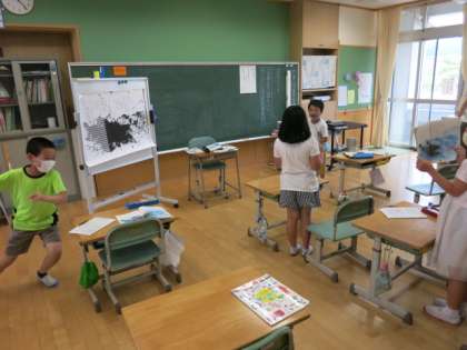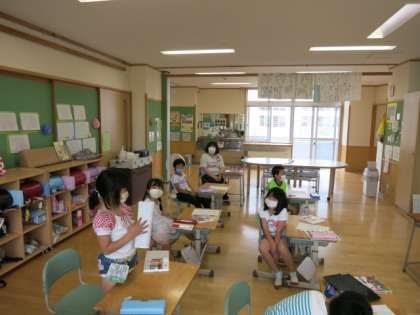2年生 スイミーの音読と話合いです。音読のときにスイミーになって動作をしている人もいました。
