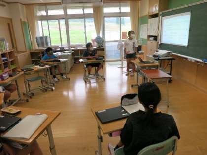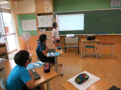5・6年生 総合 調べたことをみんなの前で発表しています。