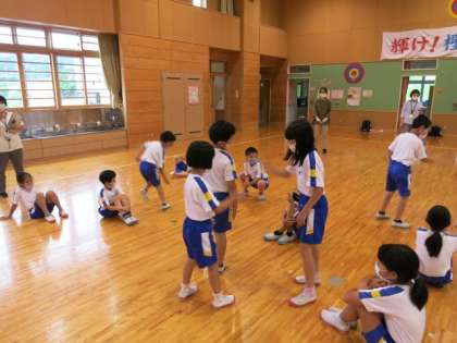 劇団うりんこの団員さんが来校され、5日の本番に向けて、子どもたちと身体表現の事前ワークショップを行いました。