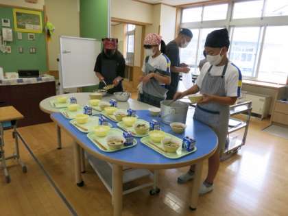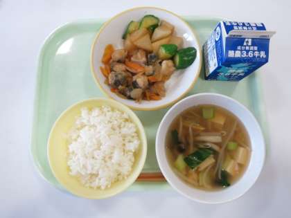 今日の献立は、魚のやさいあんからめ、かふう和え、豆腐スープ、です。
