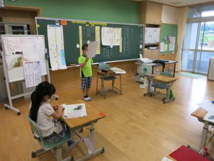 「スイミー」の場面ごとに、心に残ったところについて話し合っています。