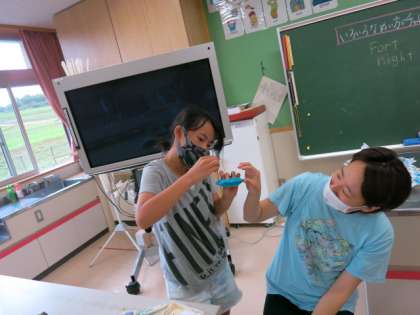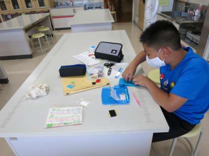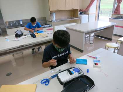 ミニクッション作りに取り組みました。男子もがんばっています。