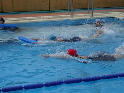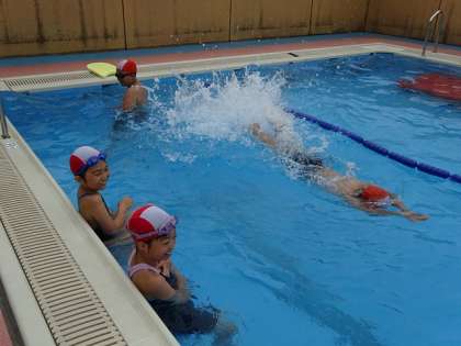 先週の水泳教室での学習を生かして、力いっぱい泳いでいました。