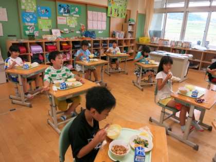 今日の献立は、マーボーどうふ、にんじんシューマイ、ナムル、冷とうりんご、です。