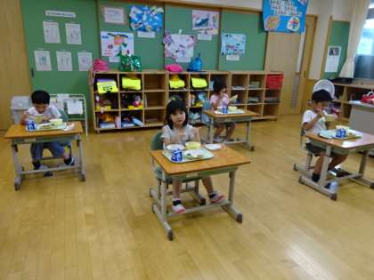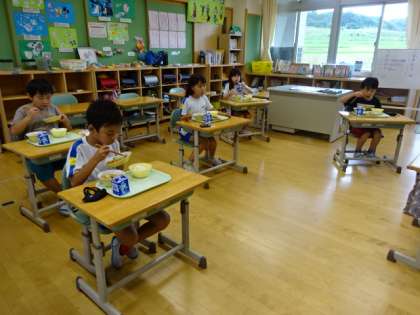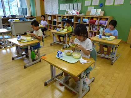 今日も蒸し暑いですが、元気に給食を食べています。