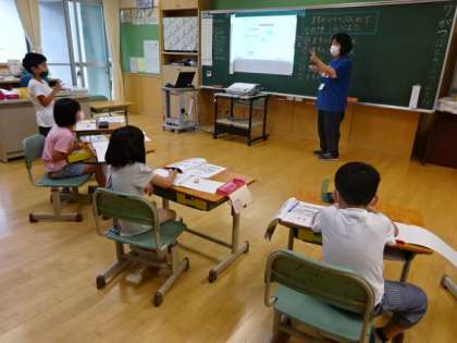 1年生は算数で、物の長さをマス目の数で表す学習をしています。