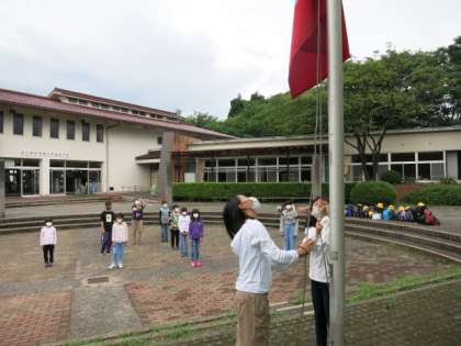 呉羽青少年自然の家に到着し、入所式を行いました。