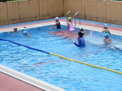 今日はお天気に恵まれ、下学年みんなでプールに入りました。