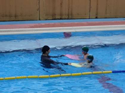 自分の力に合わせて2つのグループに分かれ、一生懸命練習に取り組みました。プールに入るたびに上達している子供たちです。
