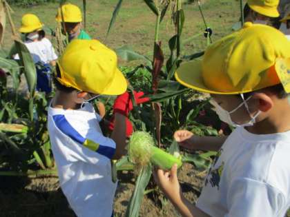 1・2年生 とうもろこし収穫!