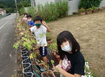 校長先生と一緒に植えたアサガオに種がいっぱいできました。みんなで楽しく種とりをしました。まだまだたくさんとれそうです。