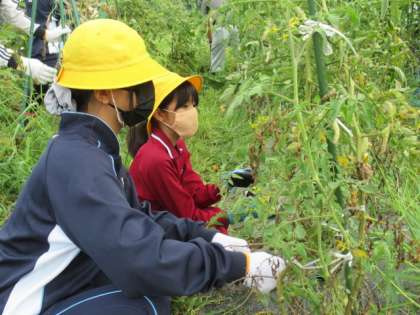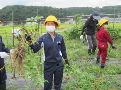 秋らしくなってきました。 晴れ間を見て、元気畑の夏野菜の畝の後片付けと、サツマイモのつるがえしの作業をしました。