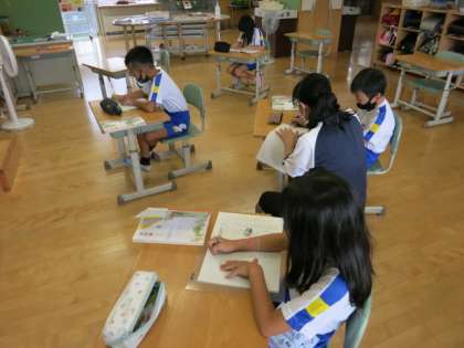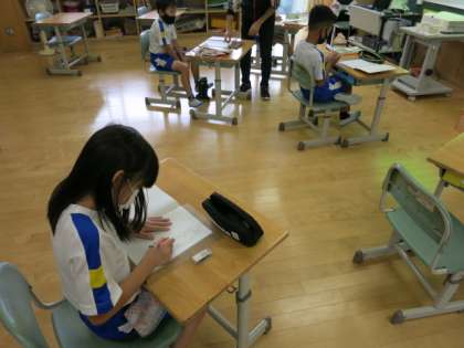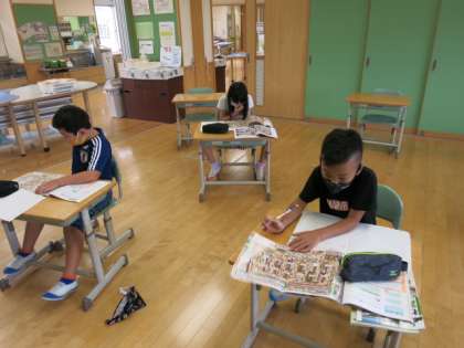 社会科では、スーパーマーケットの中の様子を表した教科書の絵から、はたらく人の様子を調べました。