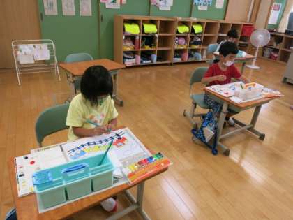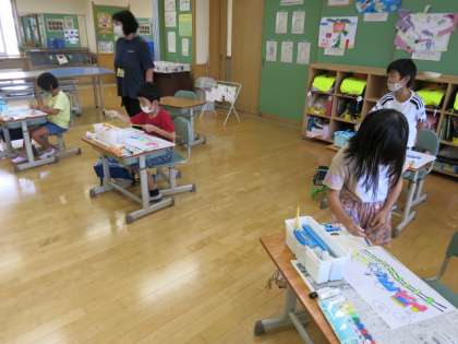 1年生 図画工作科 水彩を使った色塗りをしました。