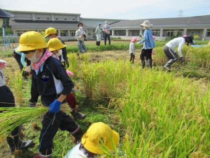 稲刈り 公開日 2021/09/13 更新日 2021/09/13 学校風景 5月に植えた富富富の稲刈りを行いました。 KEK、地域の方々、正進会の皆さんがお世話に来てくださいました。 みんなで開校式を行ってから、田んぼに移動して、作業を始めました。