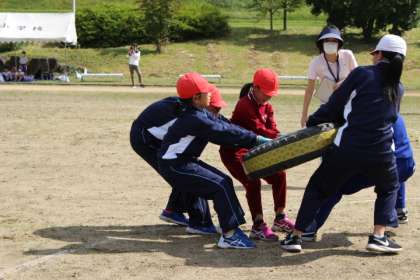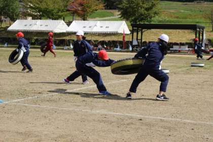 上学年の子供たちが楽しみにしているタイヤ引きです。