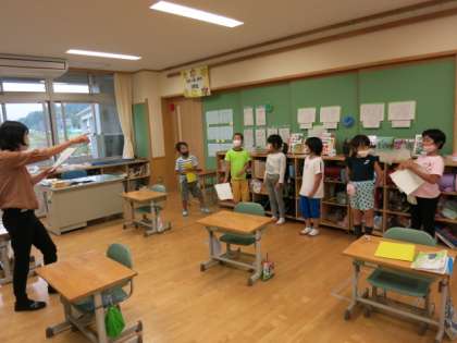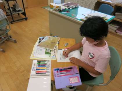2年生 生活科 飼っている虫の様子をカードに描いてます。