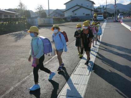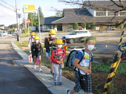 工事が終わり、新しくなった歩道を歩いて登校します。
