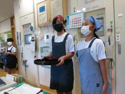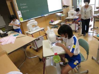 学習の様子2 公開日 2021/10/14 更新日 2021/10/14 学校風景 高学年 家庭会 5年生は調理実習でお味噌汁をつくりました。 できたお味噌汁を職員室のみささんにも味わってただこうと、届けに行きました。 6年生は、ミシンを使って、マスク入れを作りました。