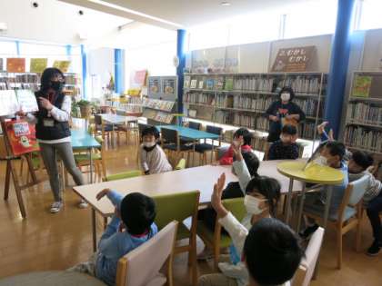 1・2年生 校外学習その4 公開日 2021/10/26 更新日 2021/10/26 学校風景 大島絵本館では、ミニシアターで絵本の動画を観たり、読み聞かせをしていただいたりしました。読み聞かせは、ハーロウィンの絵本でした。