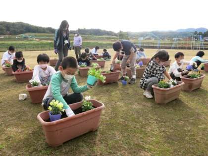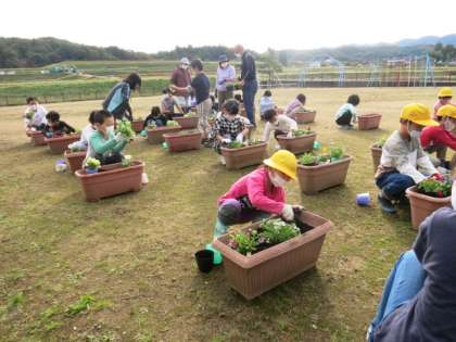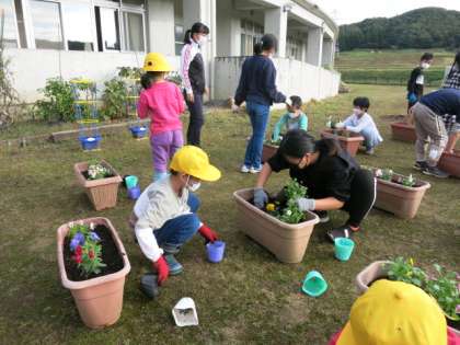 キンギョソウ、パンジー、ビオラ、ノースポール、アリッサムから、3つ選びプランターに植えました。