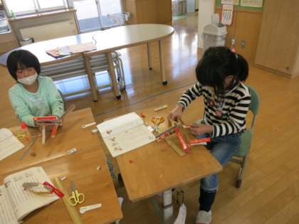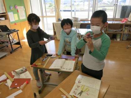 学習の様子2 公開日 2021/11/04 更新日 2021/11/04 学校風景 2年生 国語科 説明文を読み取って、おもちゃを作りました。 どのように作るかを、しっかりと読み取る力が必用になります。
