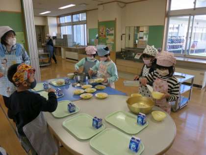 今日の献立は、秋のかおりシチュー、たまごロール、フレンチサラダ、です。
