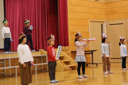 1・2年生の元気のよさが、樫の子ホールに広がっていました。